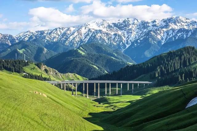 天山山脉:天山山脉横亘新疆中部,是亚洲最大的山脉之一,天山的雪峰、冰川、草原、森林等景观,构成了新疆的自然奇观。